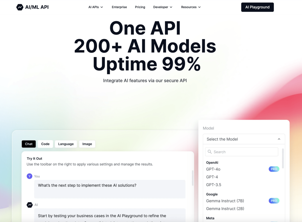 By leveraging AI/ML API, you can focus on what you do best – creating innovative software solutions – while we handle the complexities of AI integration. Join the ranks of forward-thinking developers and entrepreneurs who are revolutionizing their industries with AI-powered applications.