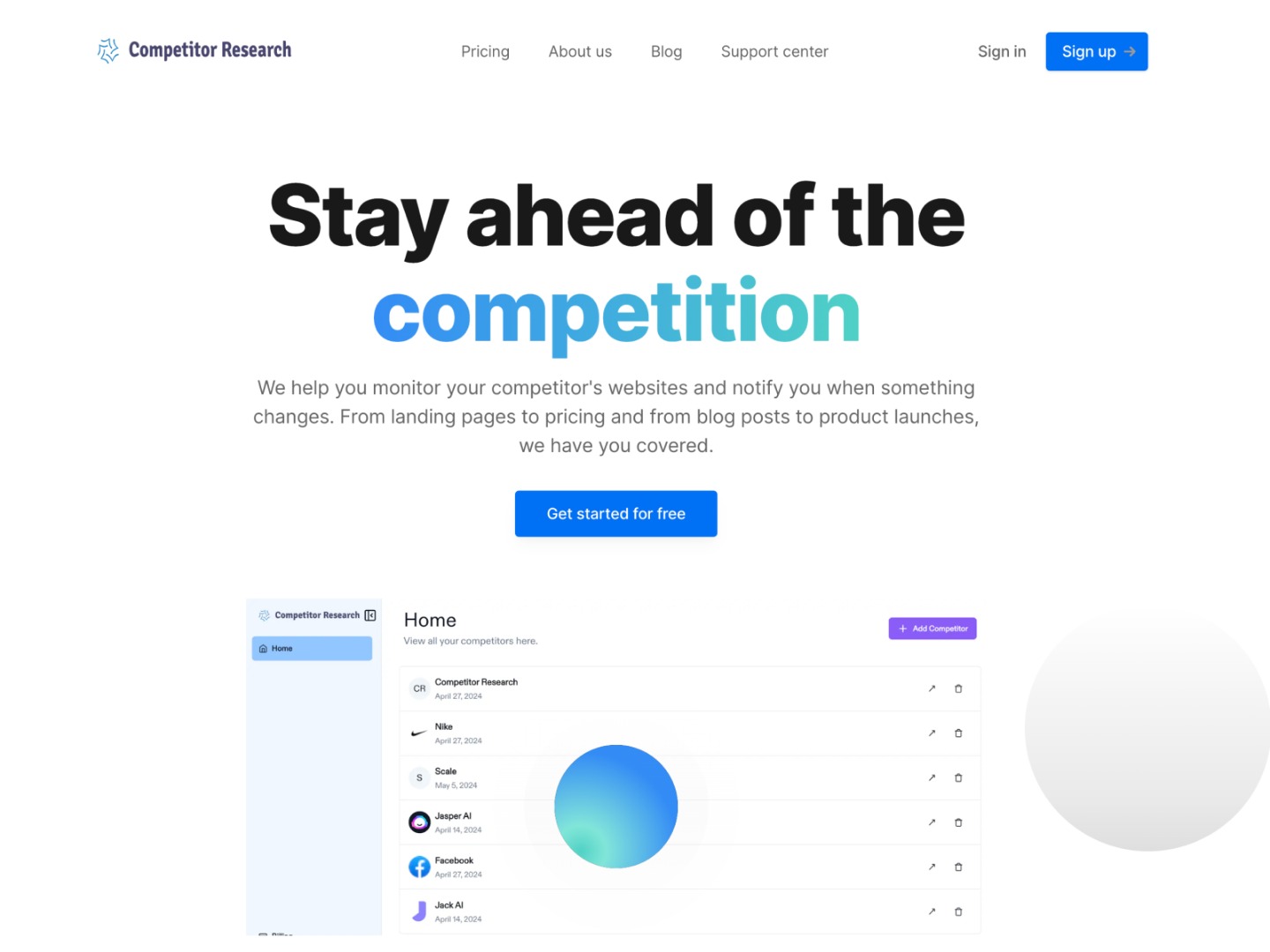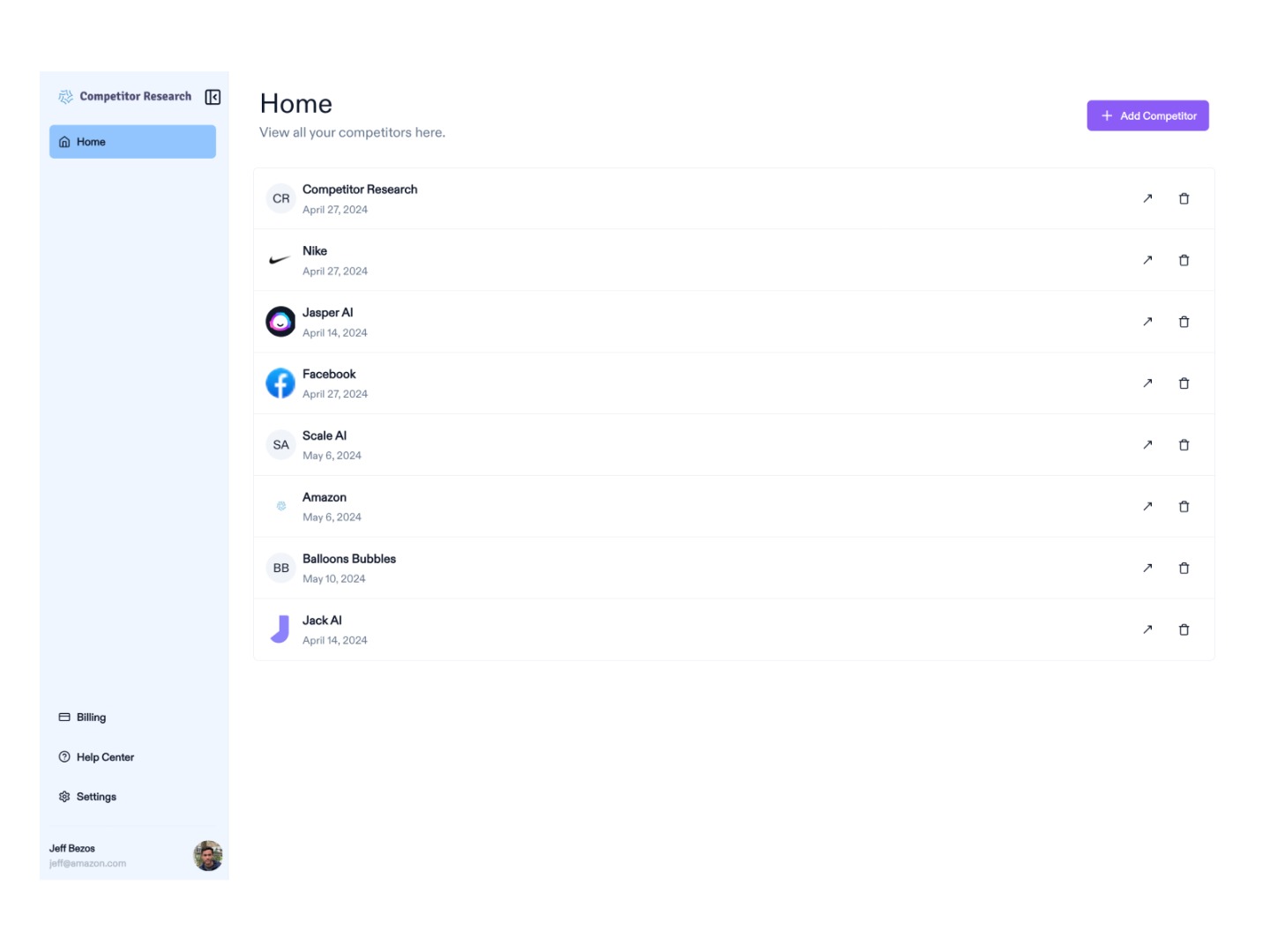 Competitor Research keeps you ahead of the game by monitoring your rivals’ websites and social media. Get instant alerts on changes, track updates with AI-driven screenshots, and stay informed on your competitor’s activity across platforms like Instagram, LinkedIn and many more.Â