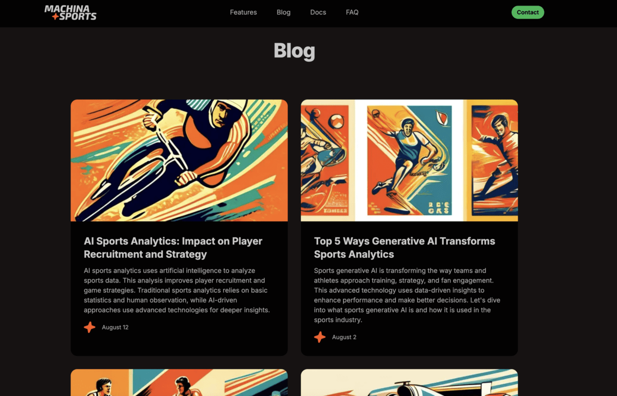 Machina Sports is redefining the sports industry through advanced AI solutions. Our platform combines real-time data with generative AI to automate content creation, boost fan engagement, and deliver in-depth performance insights. With seamless API integration, sports organizations can enhance their operations without complex infrastructure. From personalized fan experiences to strategic player analytics, Machina Sports empowers teams, leagues, and media to innovate and elevate the game.